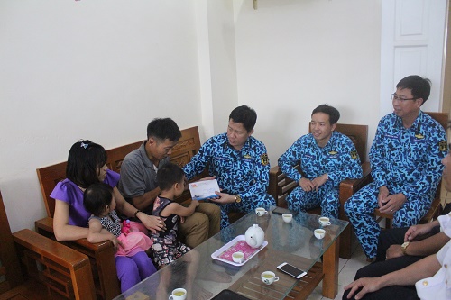 Đoàn công tác đã trao 2 phần quà, mỗi phần quà trị giá 50 triệu đồng là tiền hỗ trợ của Quân chủng cho 2 gia đình có con bị bệnh tim bẩm sinh là gia đình Trung úy QNCN Nguyễn Doãn Hùng và gia đình Trung úy QNCN Nguyễn Mạnh Tuấn.