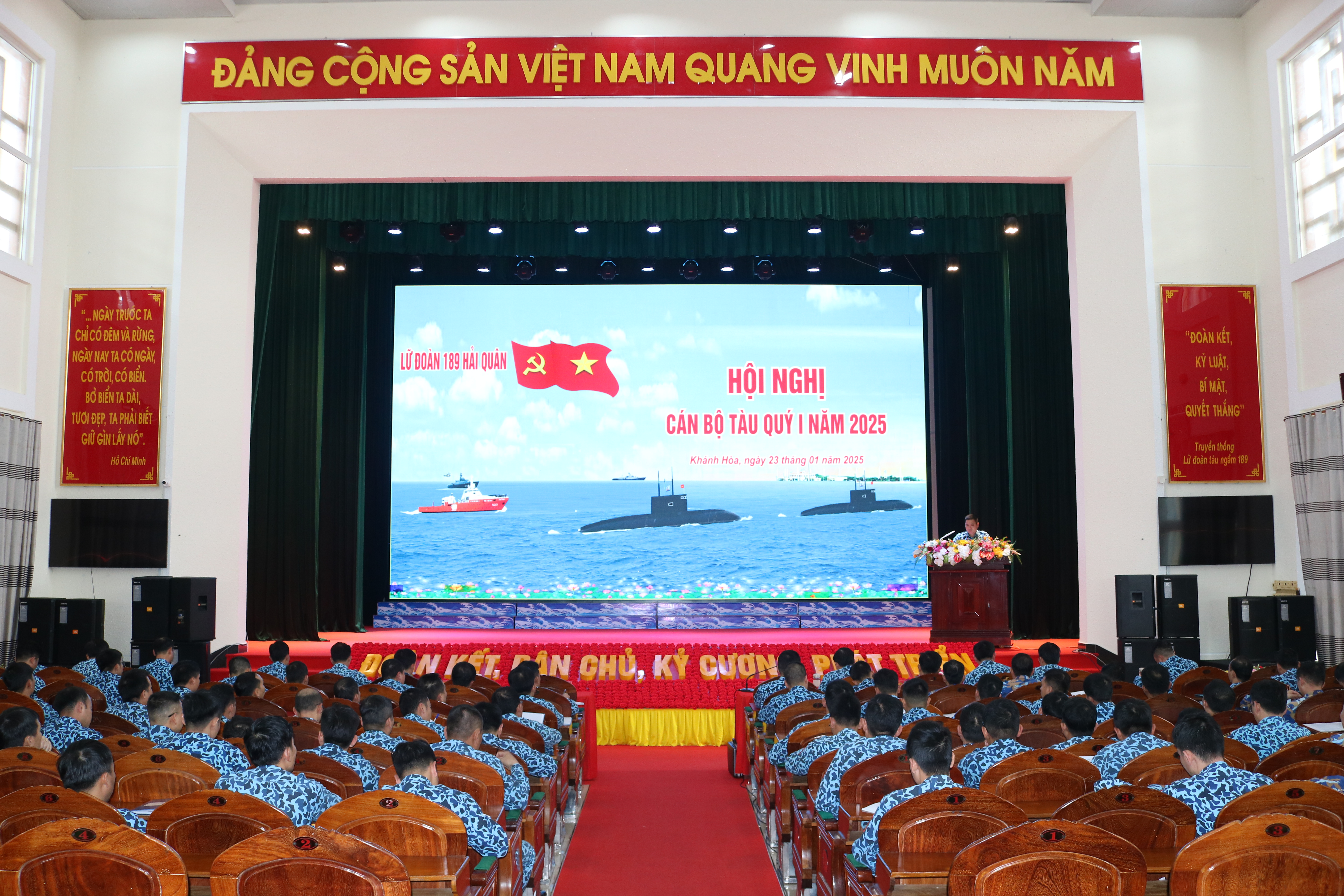 Chiều 23/1, tại TP. Cam Ranh, tỉnh Khánh Hòa, Lữ đoàn tàu ngầm 189 Hải quân tổ chức Hội nghị cán bộ tàu Quý I năm 2025. Thượng tá Nguyễn Xuân Quân, Lữ đoàn trưởng chủ trì.
