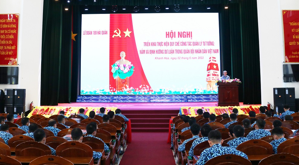 Ngày 2/6, tại TP. Cam Ranh, tỉnh Khánh Hòa, Lữ đoàn 189 Hải quân tổ chức Hội nghị triển khai thực hiện Quy chế quản lý tư tưởng quân nhân, nắm và định hướng dư luận trong QĐND Việt Nam.