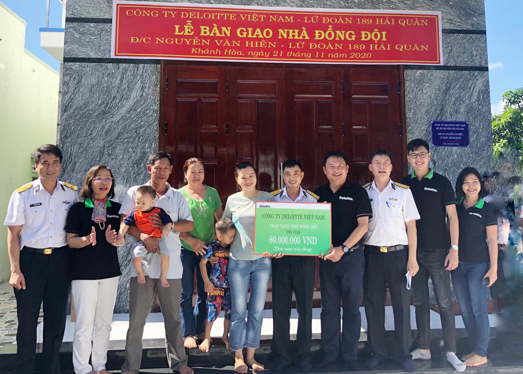 Ngày 21-11, tại phường Cam Linh, TP. Cam Ranh, tỉnh Khánh Hòa, Lữ đoàn 189 Hải quân và Công ty Deloitte Việt Nam tổ chức lễ khánh thành và bàn giao nhà đồng đội cho Thượng úy QNCN Nguyễn Văn Hiền, Kỹ thuật viên Phòng Kỹ thuật Lữ đoàn.