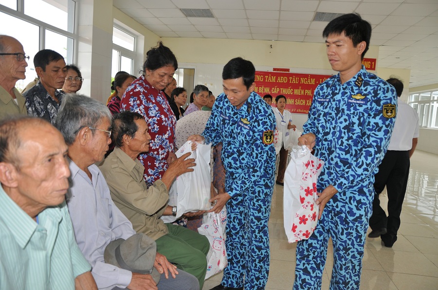Đại diện Lữ đoàn đã tặng 2 sổ tiết kiệm cho hai con liệt sĩ với tổng số tiền là 143 triệu đồng. Tại xã An Phú, TP. Tuy Hòa, tỉnh Phú Yên, cán bộ, thủy thủ Lữ đoàn đã phối hợp với Trung tâm An điều dưỡng Tàu ngầm tổ chức thăm, tặng quà Mẹ Việt Nam anh hùng, khám bệnh, cấp thuốc miễn phí, tặng quà 25 gia đình chính sách với tổng số tiền gần 10 triệu đồng.