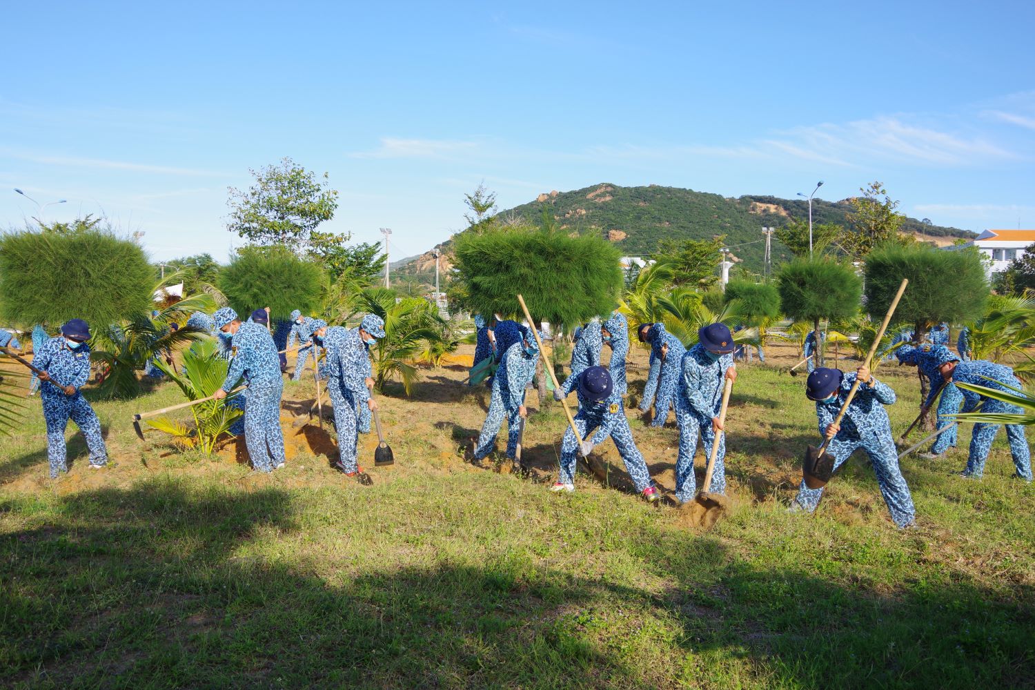 Cán bộ, chiến sĩ tích cực trồng cây xanh cải tạo môi trường