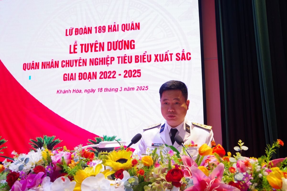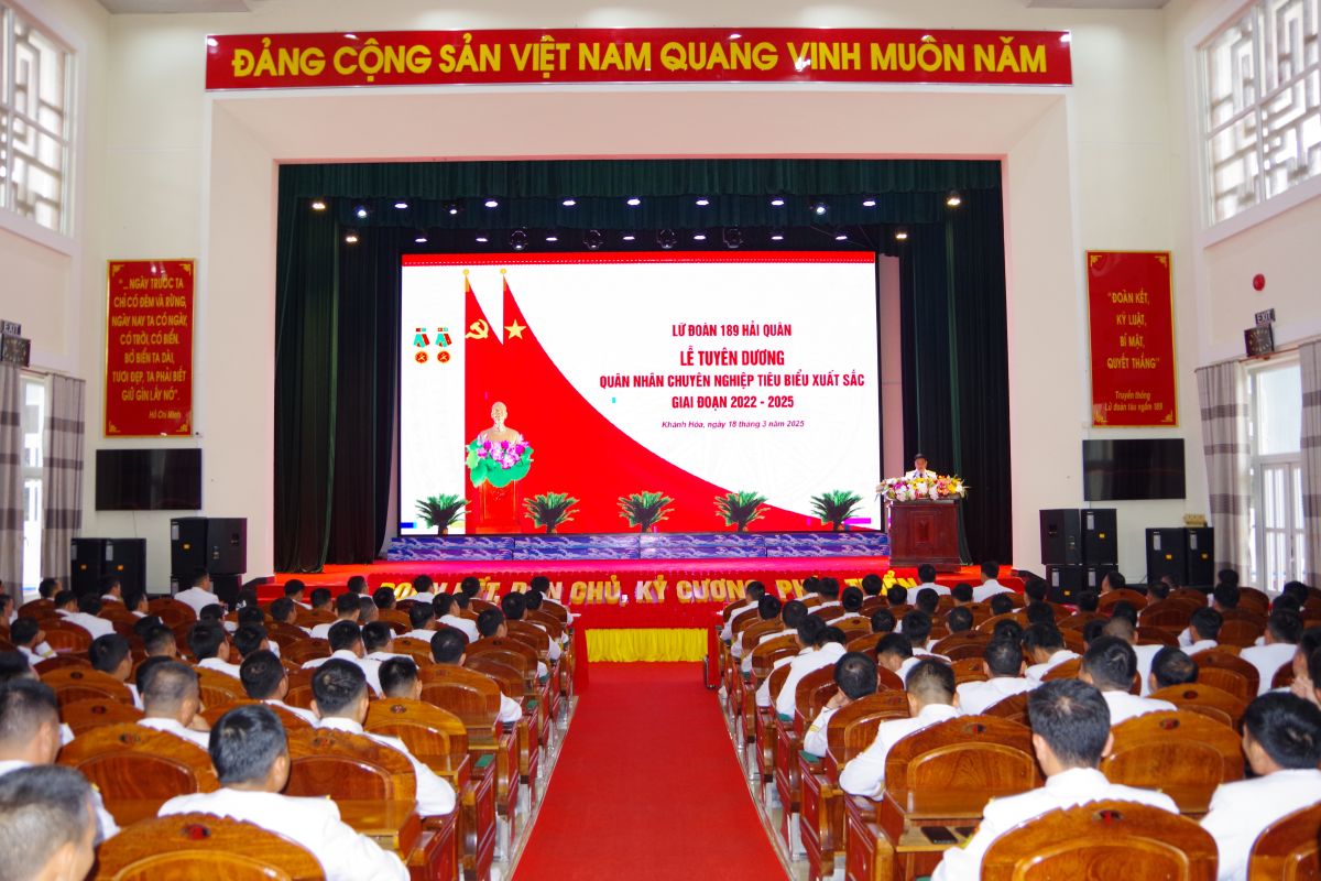 Chiều 18/3, tại TP. Cam Ranh, tỉnh Khánh Hòa, Lữ đoàn tàu ngầm 189 tổ chức Lễ tuyên dương quân nhân chuyên nghiệp (QNCN) tiêu biểu xuất sắc giai đoạn 2022 - 2025. Thượng tá Nguyễn Xuân Quân, Lữ đoàn trưởng chủ trì.