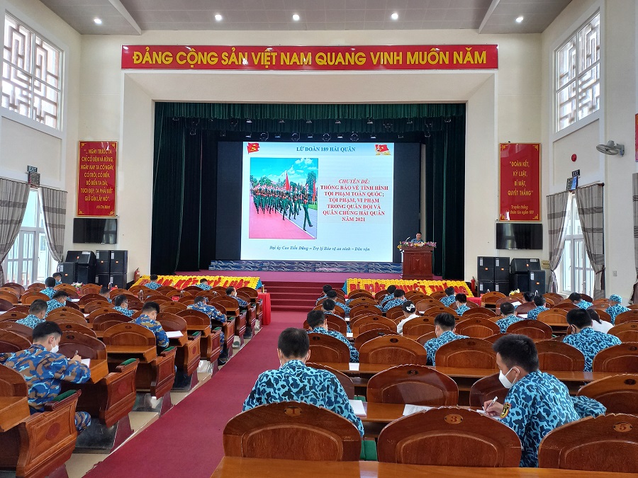 Sáng 14/4, tại TP. Cam Ranh, tỉnh Khánh Hòa, Lữ đoàn 189 Hải quân tổ chức Hội nghị phổ biến, giáo dục pháp luật năm 2022. Trung tá Nguyễn Đức Tường, Chính ủy Lữ đoàn chủ trì.