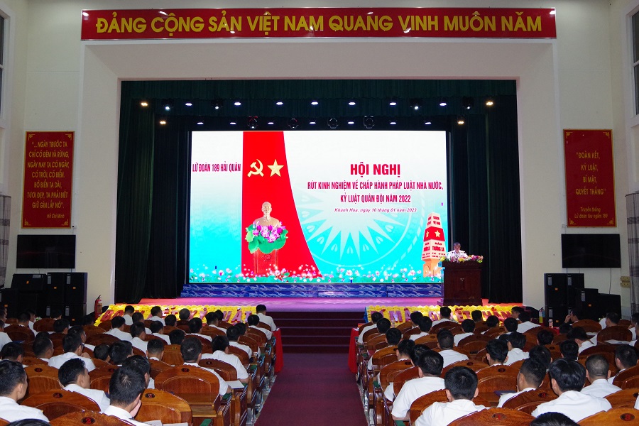 Tối 10/1, tại TP. Cam Ranh, tỉnh Khánh Hòa, Lữ đoàn 189 Hải quân tổ chức Hội nghị rút kinh nghiệm chấp hành pháp luật Nhà nước, kỷ luật Quân đội năm 2022.