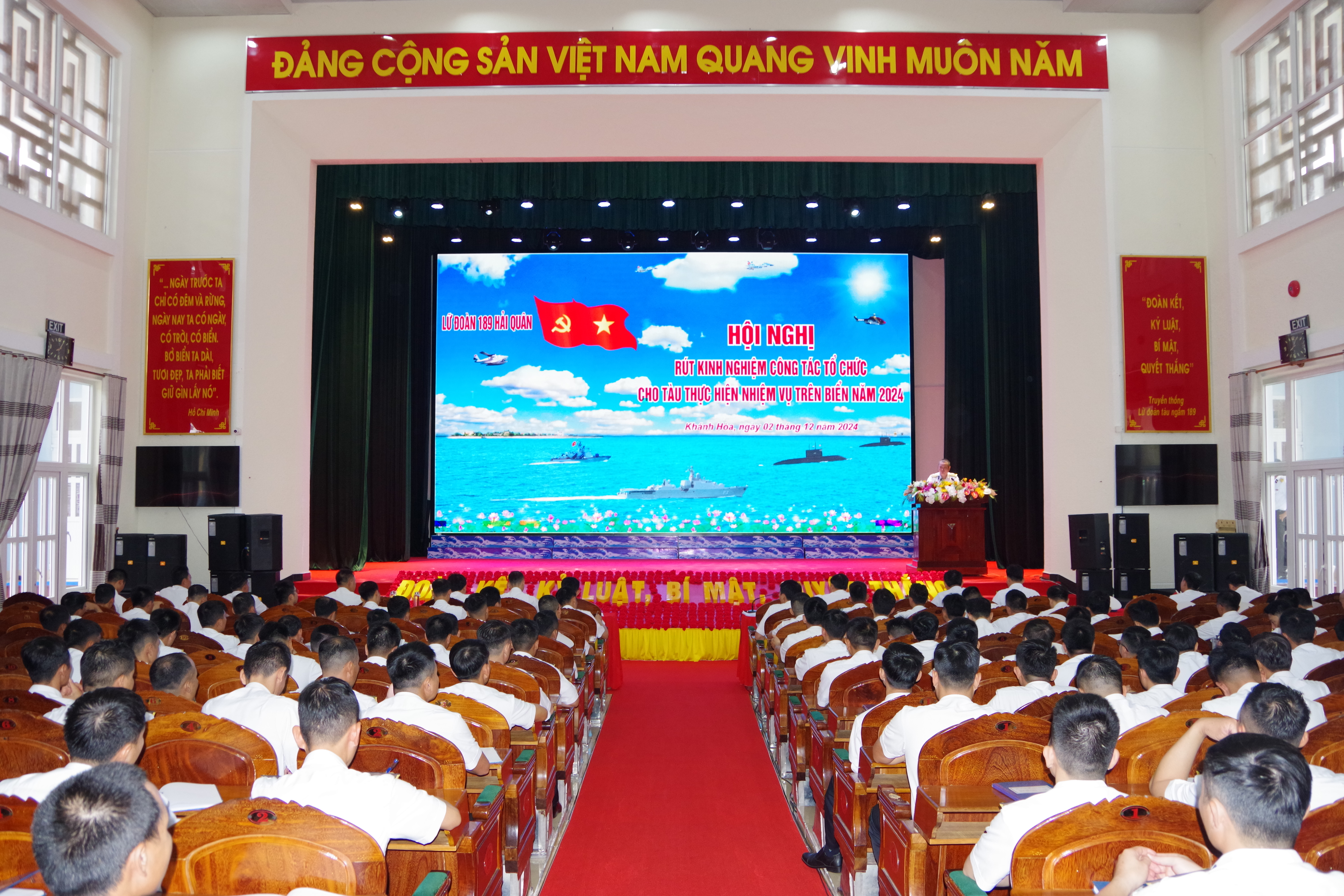 Ngày 2/12, tại TP. Cam Ranh, tỉnh Khánh Hòa, Lữ đoàn 189 Hải quân tổ chức Hội nghị rút kinh nghiệm công tác tổ chức cho tàu thực hiện nhiệm vụ trên biển năm 2024. Thượng tá Nguyễn Xuân Quân, Lữ đoàn trưởng chủ trì.