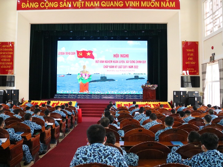 Chiều 6/4, tại TP. Cam Ranh, tỉnh Khánh Hòa, Lữ đoàn 189 đã tổ chức Hội nghị rút kinh nghiệm huấn luyện, xây dựng chính quy, chấp hành kỷ luật Quý I năm 2022. Trung tá Nguyễn Xuân Quân, Phó Lữ đoàn trưởng, Tham mưu trưởng chủ trì.