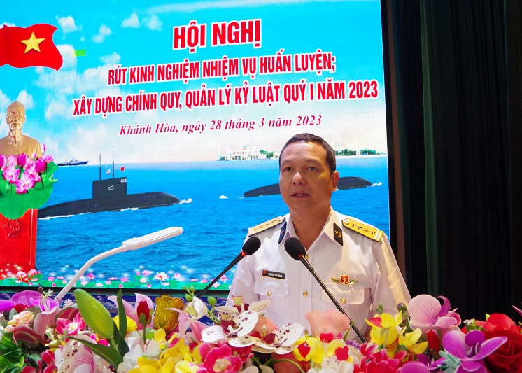 Chiều 28/3, tại TP. Cam Ranh, tỉnh Khánh Hòa, Lữ đoàn 189 Hải quân tổ chức Hội nghị rút kinh nghiệm nhiệm vụ huấn luyện, xây dựng chính quy, quản lý kỷ luật Quý I năm 2023. Đại tá Nguyễn Văn Quán, Lữ đoàn trưởng chủ trì.