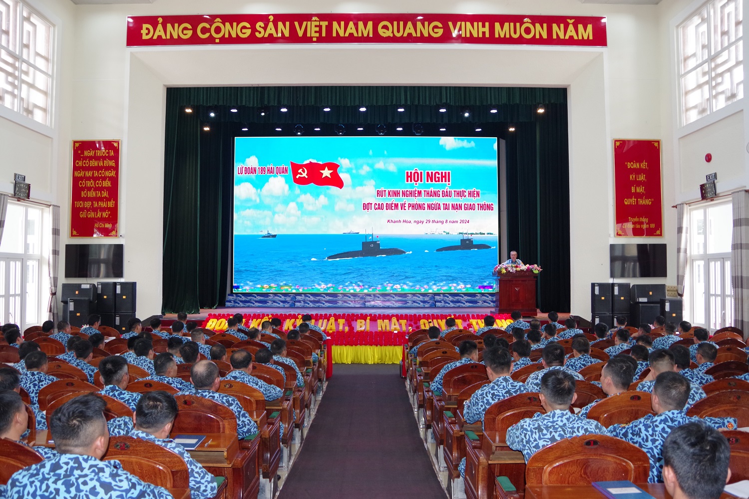 Ngày 29/8, tại TP. Cam Ranh, tỉnh Khánh Hòa, Lữ đoàn Tàu ngầm 189 Hải quân tổ chức Hội nghị rút kinh nghiệm tháng đầu thực hiện đợt cao điểm về phòng ngừa tai nạn giao thông. Thượng tá Nguyễn Xuân Quân, Lữ đoàn trưởng chủ trì.
