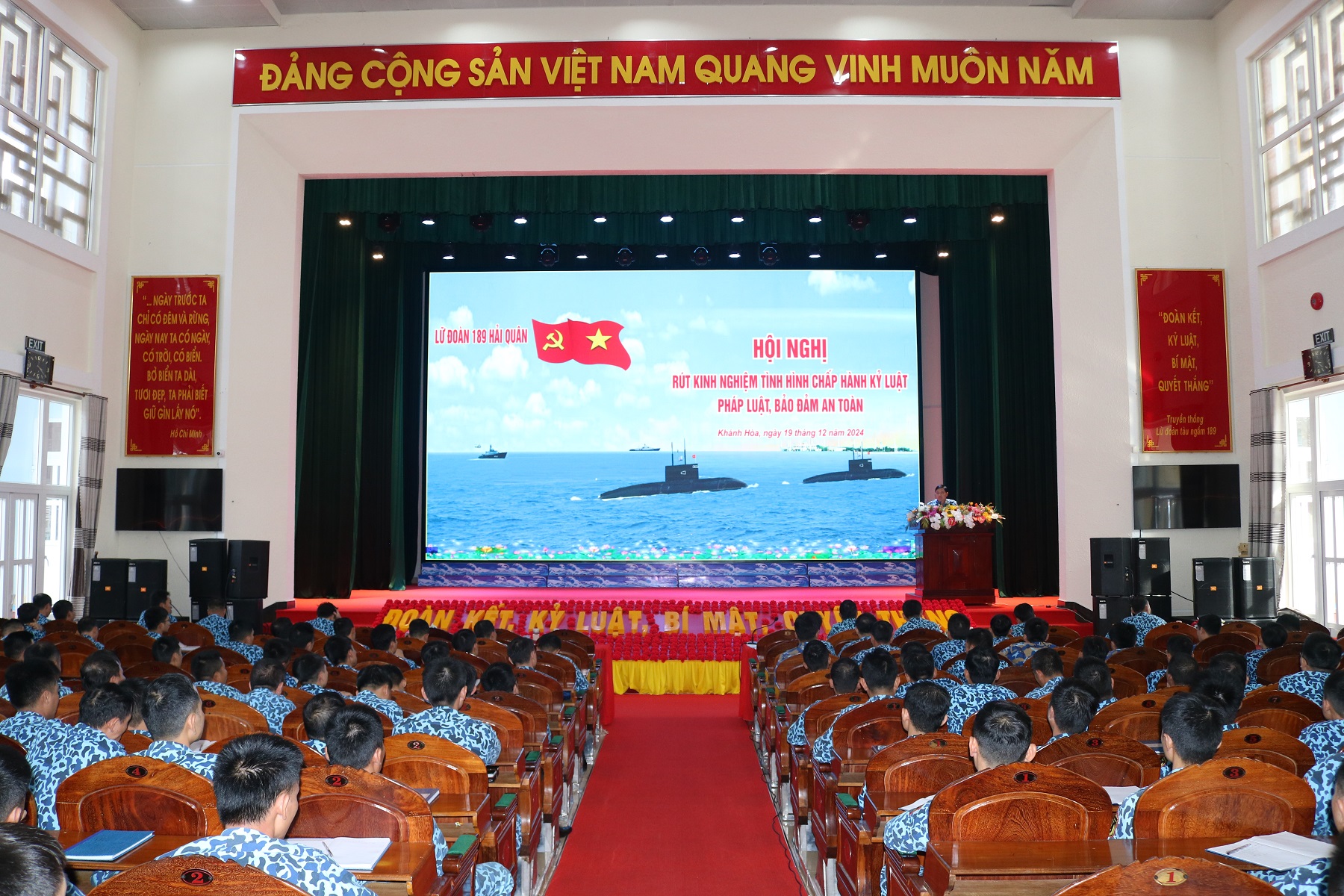 Chiều 19/12, tại TP. Cam Ranh, tỉnh Khánh Hoà, Lữ đoàn 189 Hải quân tổ chức Hội nghị rút kinh nghiệm tình hình chấp hành kỷ luật, pháp luật và bảo đảm an toàn. Thượng tá Nguyễn Xuân Quân, Lữ đoàn trưởng chủ trì.