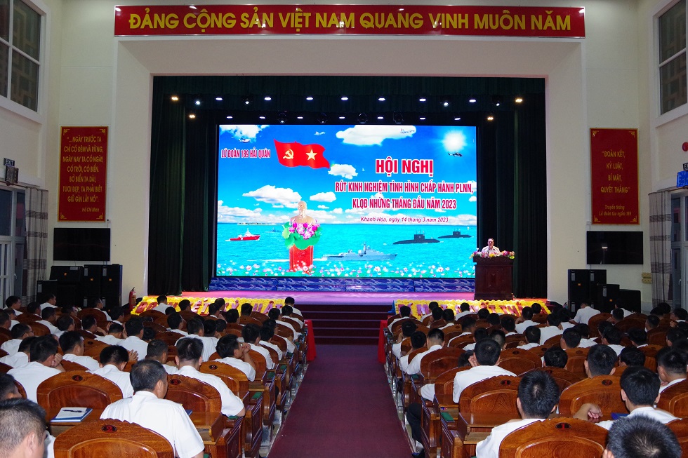 Tối 14/3, tại TP. Cam Ranh, tỉnh Khánh Hoà, Lữ đoàn 189 Hải quân tổ chức Hội nghị rút kinh nghiệm tình hình chấp hành pháp luật Nhà nước, kỷ luật Quân đội những tháng đầu năm 2023. Đại tá Nguyễn Văn Quán, Lữ đoàn trưởng chủ trì.