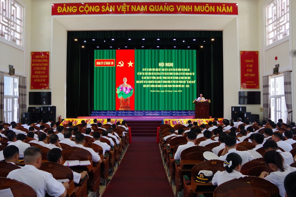 Ngày 20/3, tại TP. Cam Ranh, tỉnh Khánh Hòa, Lữ đoàn 189 Hải quân tổ chức Hội nghị sơ kết 3 năm thực hiện Kết luận số 01-KL/TW của Bộ Chính trị khóa XIII về tiếp tục thực hiện Chỉ thị 05-CT/TW của Bộ Chính trị Khóa XII và 2 năm thực hiện Nghị quyết số 847-NQ/QUTW của Quân ủy Trung ương về phát huy phẩm chất “Bộ đội Cụ Hồ”, kiên quyết chống chủ nghĩa cá nhân trong tình hình mới (2021-2023).
