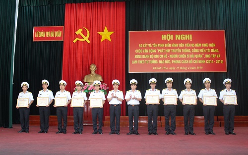 Lữ đoàn đã tặng Giấy khen cho 3 tập thể và 11 cá nhân có thành tích xuất sắc trong 5 năm thực hiện Cuộc vận động “Phát huy truyền thống, cống hiến tài năng, xứng danh Bộ đội Cụ Hồ-Người chiến sĩ Hải quân”.
