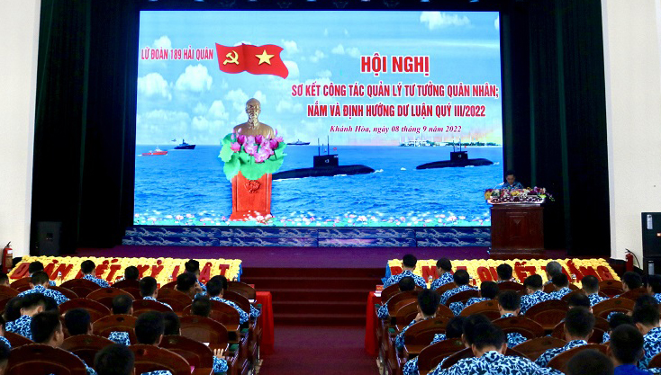 Ngày 8/9, tại TP. Cam Ranh, tỉnh Khánh Hòa, Lữ đoàn 189 Hải quân tổ chức Hội nghị sơ kết công tác quản lý tư tưởng quân nhân, nắm và định hướng dư luận Quý III năm 2022. Trung tá Nguyễn Đức Tường, Bí thư Đảng ủy, Chính ủy Lữ đoàn chủ trì.