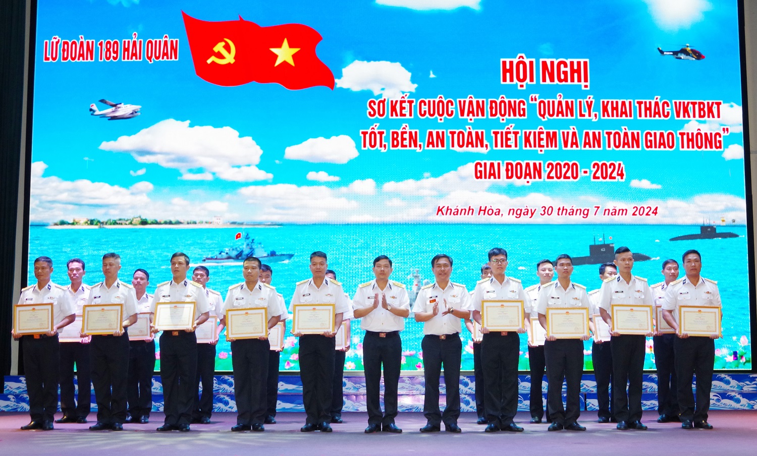 Chiều 30/7, tại TP. Cam Ranh, tỉnh Khánh Hòa, Lữ đoàn 189 Hải quân tổ chức Hội nghị sơ kết Cuộc vận động “Quản lý, khai thác vũ khí trang bị kỹ thuật tốt, bền, an toàn, tiết kiệm và an toàn giao thông” (Cuộc vận động 50) giai đoạn 2020-2024. Trung tá Nguyễn Tiến Đoạt, Phó Lữ đoàn trưởng, Tham mưu trưởng, Trưởng ban chỉ đạo 50 của Lữ đoàn chủ trì.