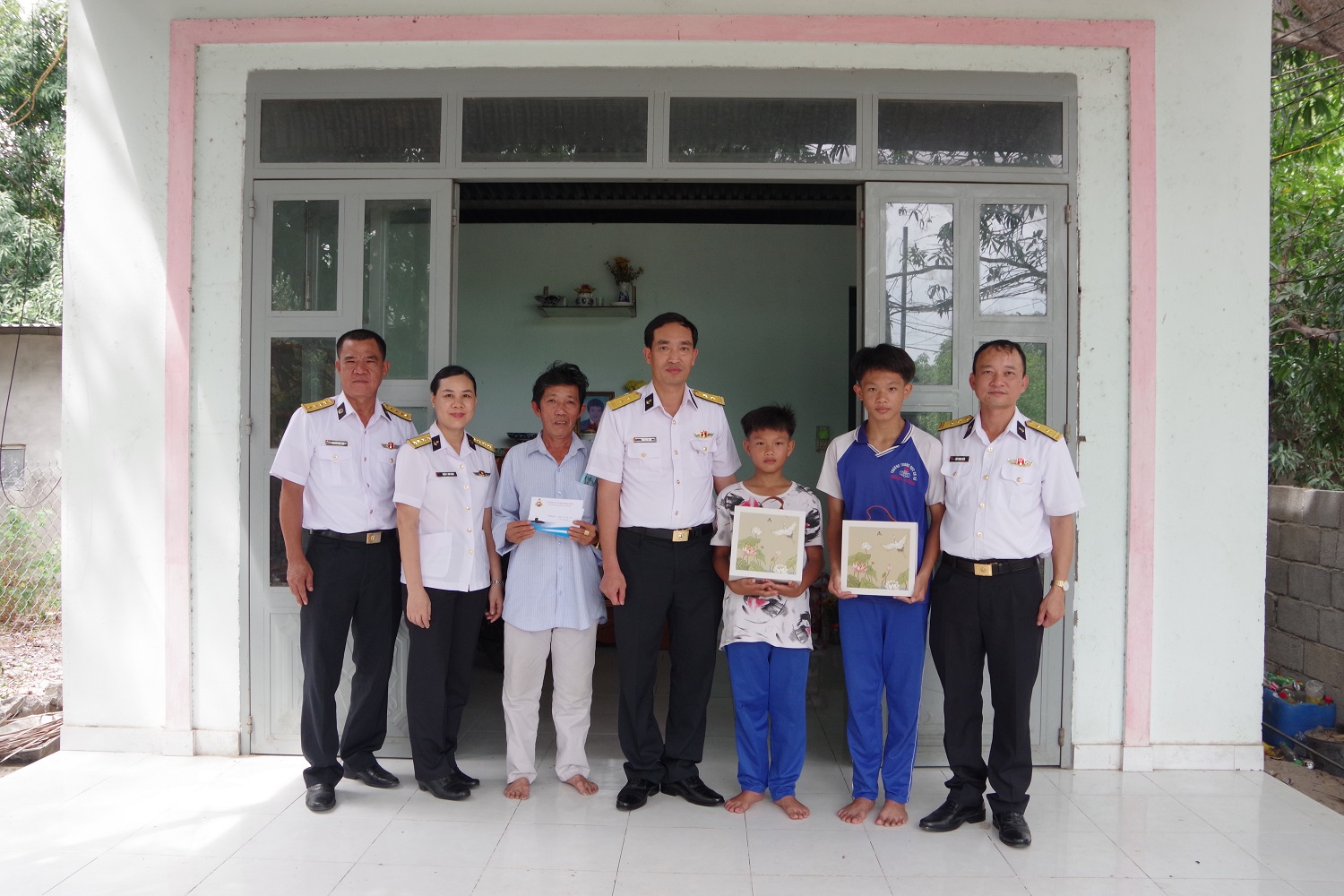 Đoàn công tác đã đến thăm và trao tặng 21 phần quà đến các cháu thiếu nhi là con của quân nhân có hoàn cảnh khó khăn đang công tác tại đơn vị; tặng quà gia đình chính sách và 2 cháu là con ngư dân được đơn vị nhận đỡ đầu tại xã Cam Hải Đông, huyện Cam Lâm, tỉnh Khánh Hòa. Mỗi phần quà trị giá 500 nghìn đồng.