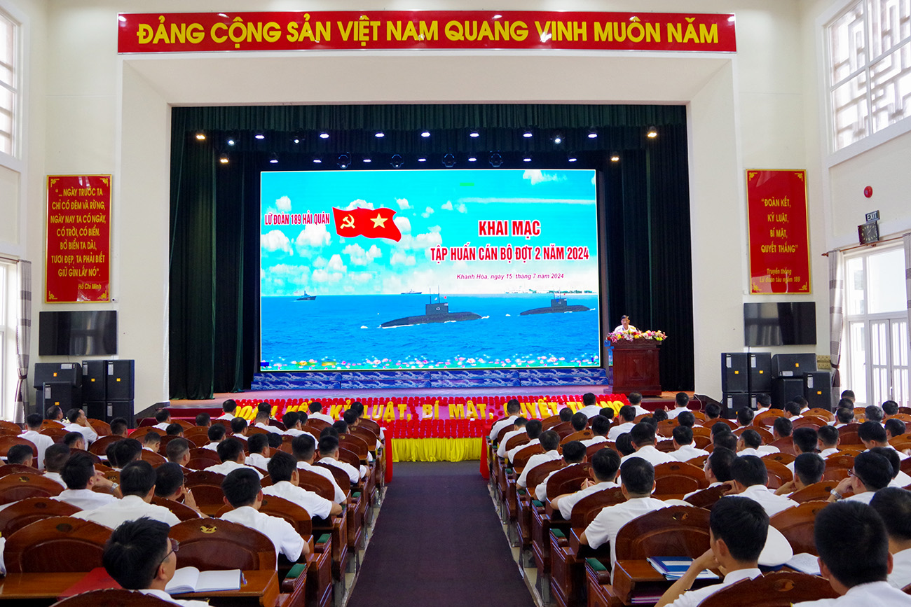 Chiều 15/7, tại TP. Cam Ranh, tỉnh Khánh Hòa, Lữ đoàn tàu ngầm 189 Hải quân tổ chức khai mạc lớp tập huấn cán bộ đợt 2 năm 2024. Trung tá Nguyễn Tiến Đoạt, Phó Lữ đoàn trưởng, Tham mưu trưởng Lữ đoàn chủ trì.