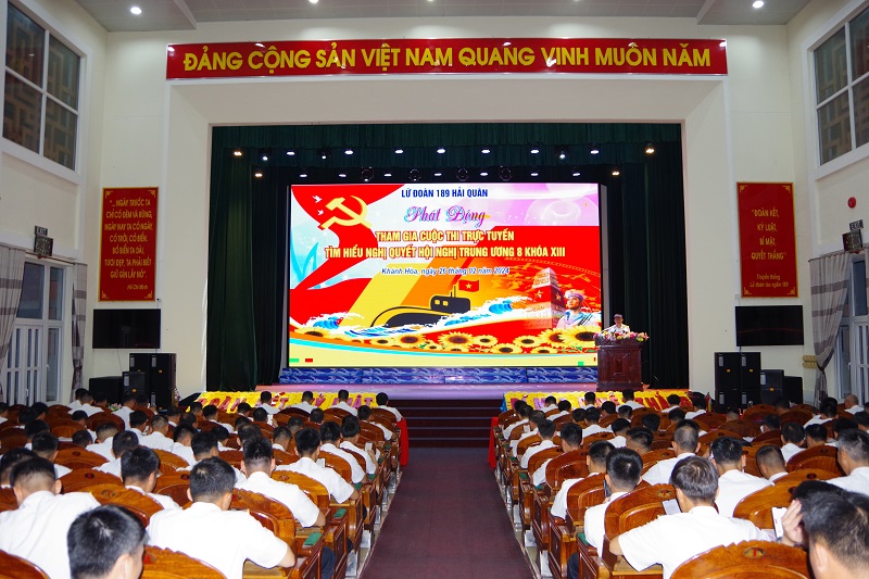 Ngày 26/2, tại TP. Cam Ranh, tỉnh Khánh Hòa, Lữ đoàn tàu ngầm 189 tổ chức phát động tham gia cuộc thi trực tuyến tìm hiểu Nghị quyết Hội nghị Trung ương 8, Khóa XIII.