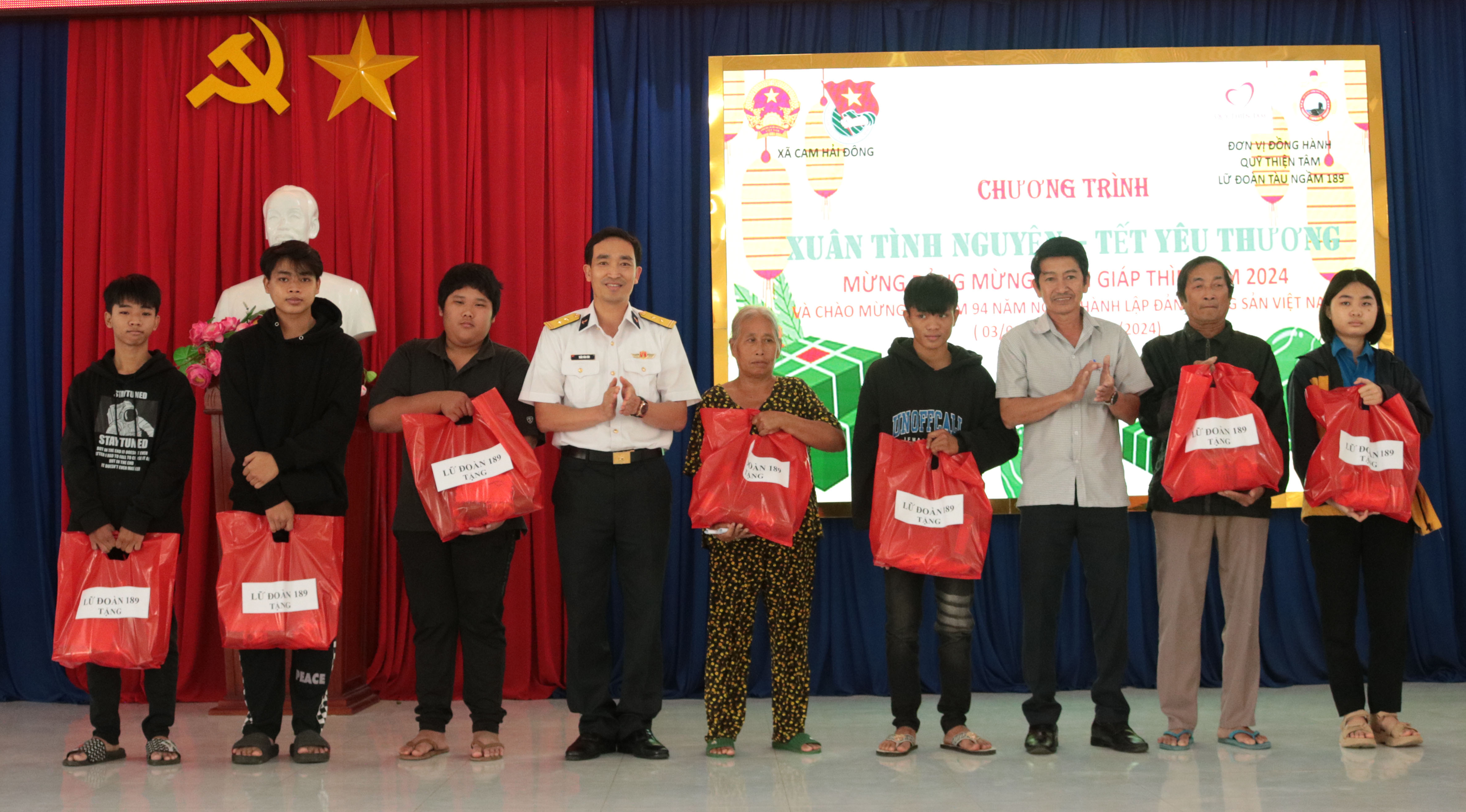 Ngày 26/1, tại xã Cam Hải Đông, huyện Cam Lâm, tỉnh Khánh Hòa, Lữ đoàn 189 Hải quân phối hợp với UBND xã Cam Hải Đông và các đơn vị đồng hành tổ chức chương trình “Xuân tình nguyện - Tết yêu thương”.