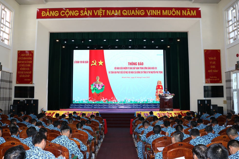Ngày 1/6, tại TP. Cam Ranh, tỉnh Khánh Hòa, Lữ đoàn 189 tổ chức Hội nghị thông báo kết quả Hội nghị Trung ương 7, Khóa XIII đến cán bộ, đảng viên toàn Lữ đoàn.