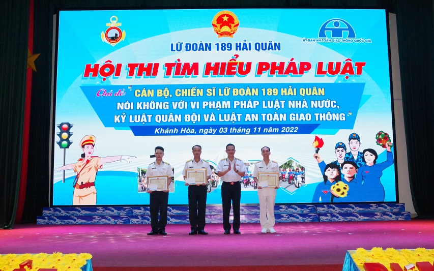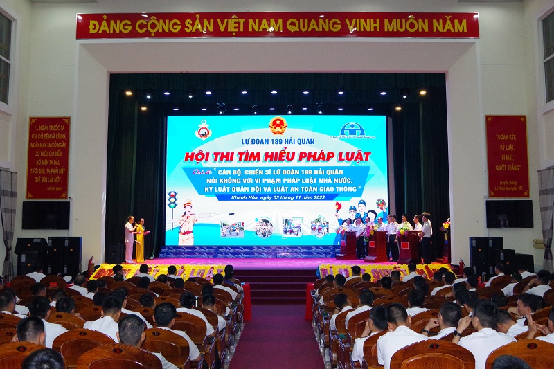 Tối 3/11, tại TP. Cam Ranh, Lữ đoàn 189 Hải quân tổ chức Hội thi tìm hiểu pháp luật với chủ đề “Cán bộ, chiến sĩ Lữ đoàn 189 Hải quân nói không với vi phạm pháp luật Nhà nước, kỷ luật Quân đội và luật an toàn giao thông”.