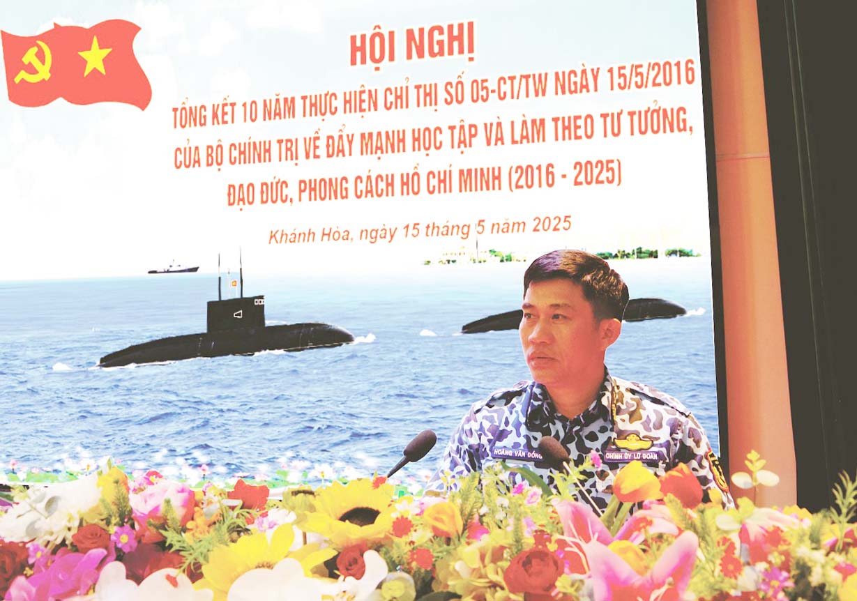 Sáng 15/5, tại TP. Cam Ranh, tỉnh Khánh Hòa, Lữ đoàn 189 Hải quân tổ chức Hội nghị tổng kết 10 năm thực hiện Chỉ thị số 05-CT/TW của Bộ Chính trị về “Đẩy mạnh học tập và làm theo tư tưởng, đạo đức, phong cách Hồ Chí Minh” giai đoạn 2016-2025. Thượng tá Hoàng Văn Đồng, Bí thư Đảng ủy, Chính ủy Lữ đoàn chủ trì.