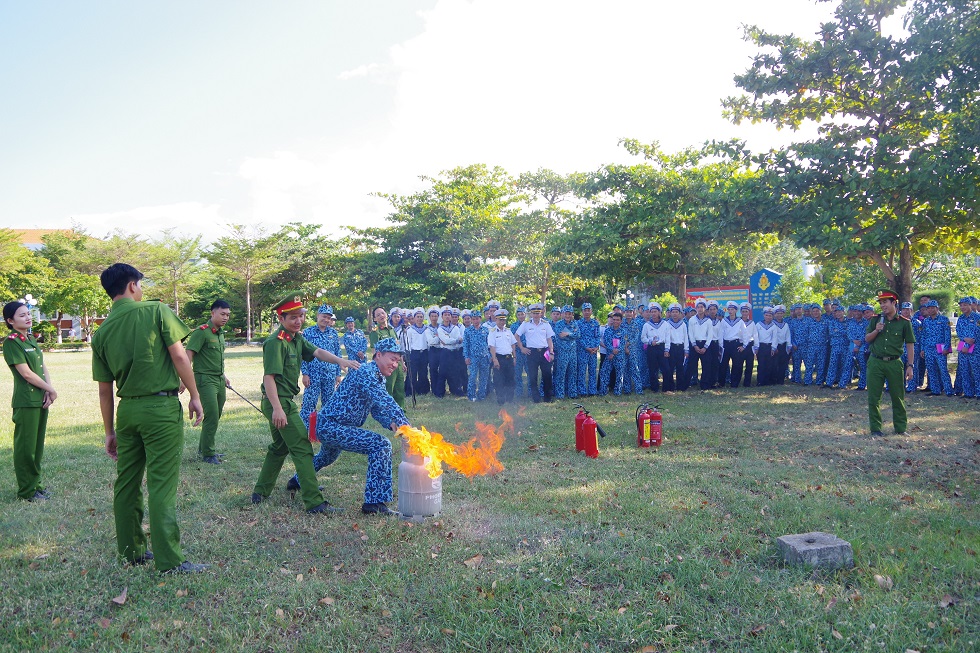 Cán bộ, chiến sĩ Phòng Cảnh sát phòng cháy, chữa cháy và cứu nạn, cứu hộ đã hướng dẫn thực hành các kỹ năng phòng cháy, chữa cháy, thoát nạn và công tác bảo đảm an toàn về phòng cháy, chữa cháy, cứu nạn, cứu hộ trong quá trình huấn luyện khai thác, sử dụng VKTBKT tại đơn vị và hộ gia đình cho cán bộ, chiến sĩ Lữ đoàn 189.
