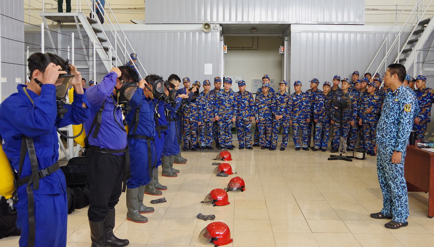 Các học viên tham quan một buổi huấn luyện tại Trung tâm huấn luyện tàu ngầm