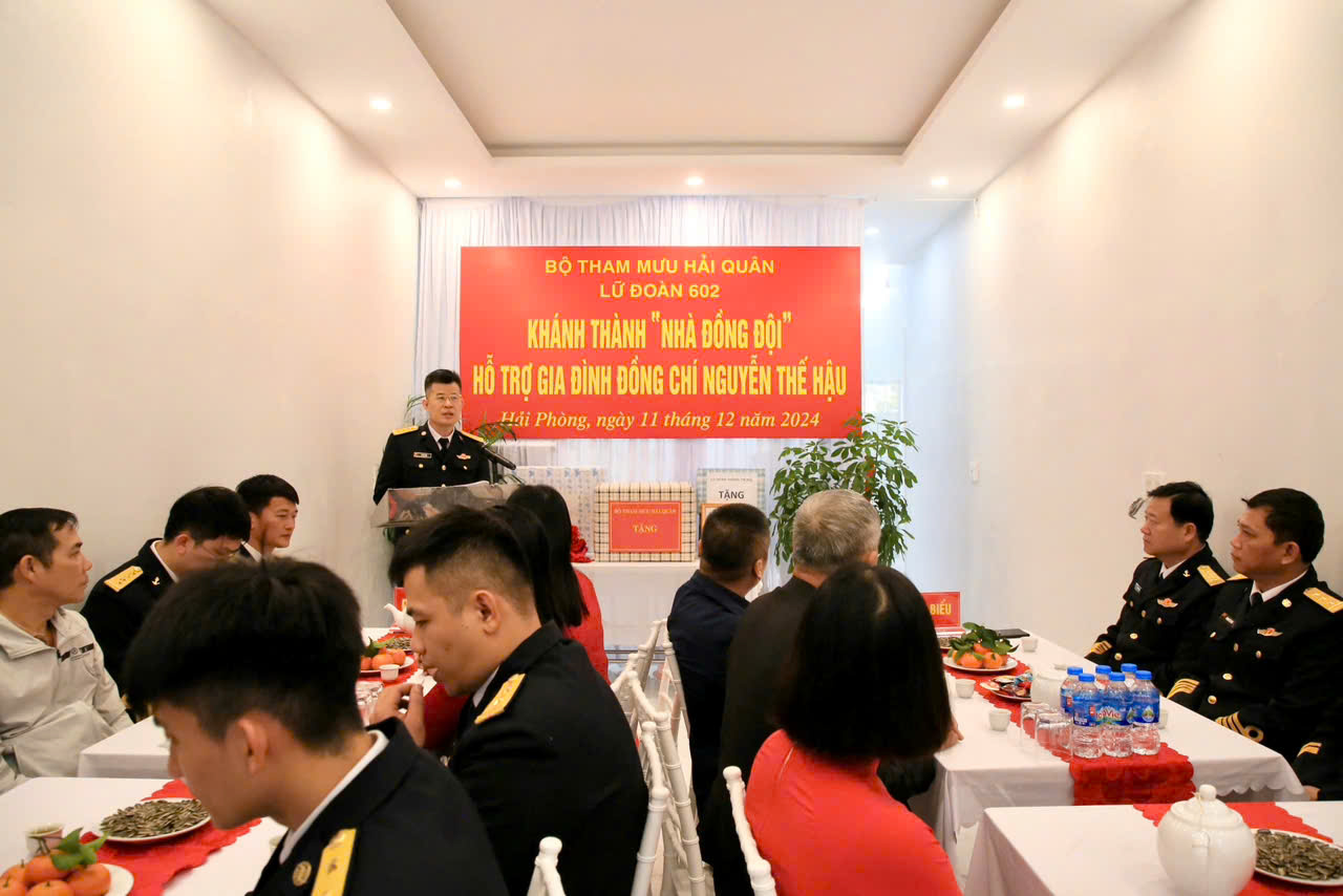 Ngày 11/12, tại phường Đằng Hải, quận Hải An, TP. Hải Phòng, Lữ đoàn 602, Bộ Tham mưu Hải quân phối hợp với cấp ủy, chính quyền địa phương tổ chức khánh thành nhà đồng đội tặng gia đình Thiếu tá QNCN Nguyễn Thế Hậu, Tiểu đội trưởng, Đại đội 62, Tiểu đoàn 2, Lữ đoàn 602.