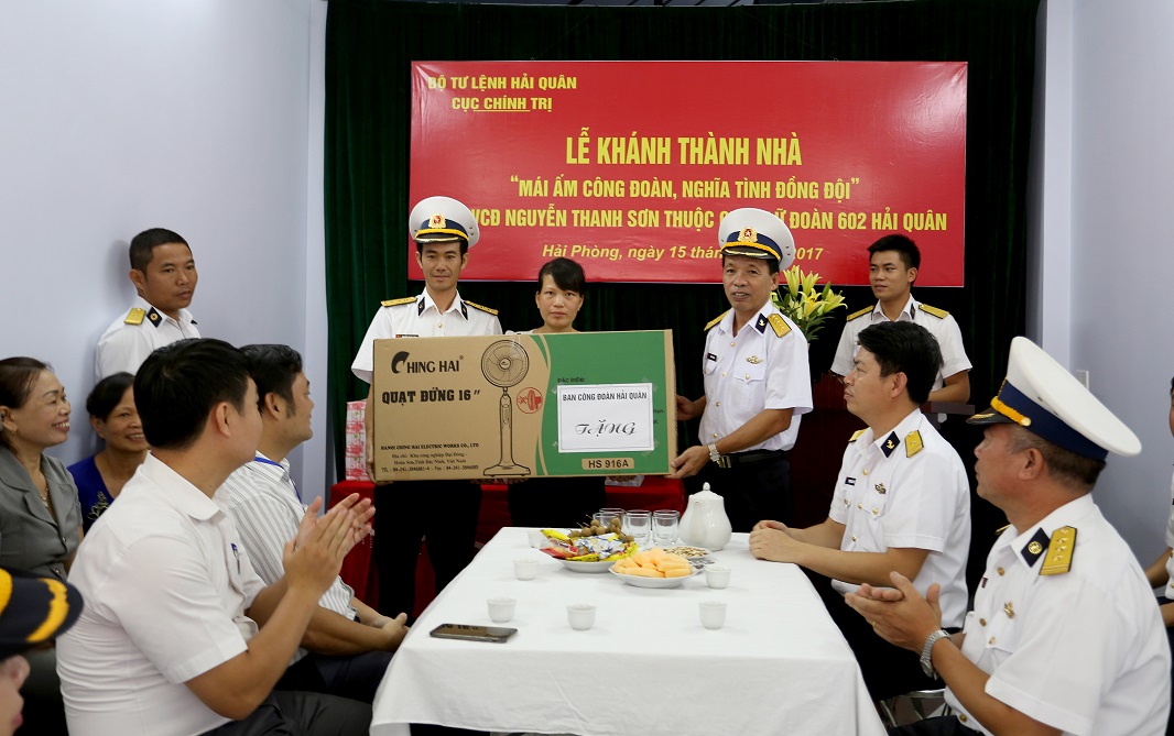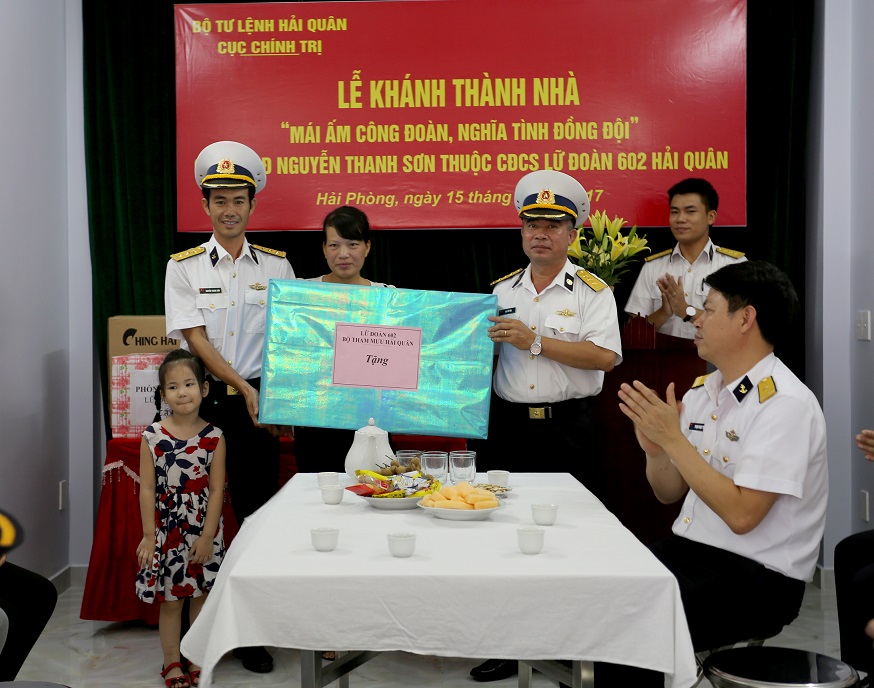 Sáng 15-8, tại phường Kênh Dương, quận Lê Chân, thành phố Hải Phòng, Lữ đoàn 602, Bộ Tham mưu Hải quân tổ chức khánh thành, bàn giao nhà “Mái ấm công đoàn, nghĩa tình đồng đội” cho Thượng úy QNCN Nguyễn Thanh Sơn - đoàn viên Công đoàn cơ sở Lữ đoàn 602. Tham dự có đại diện Ban Công đoàn Hải quân; lãnh đạo, đoàn viên công đoàn Lữ đoàn cùng đại diện chính quyền địa phương.