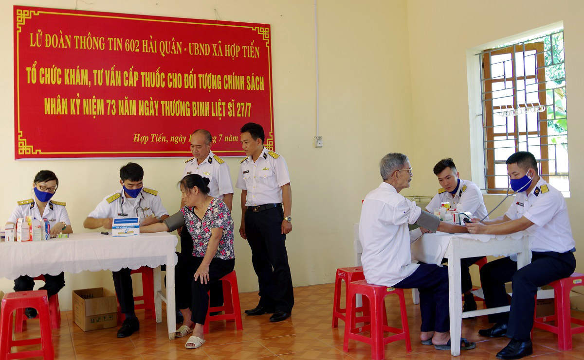 Ngày 17-7, Lữ đoàn Thông tin 602, Bộ Tham mưu Hải quân tổ chức khám, tư vấn, cấp thuốc cho đối tượng chính sách xã Hợp Tiến, huyện Nam Sách, tỉnh Hải Dương.
