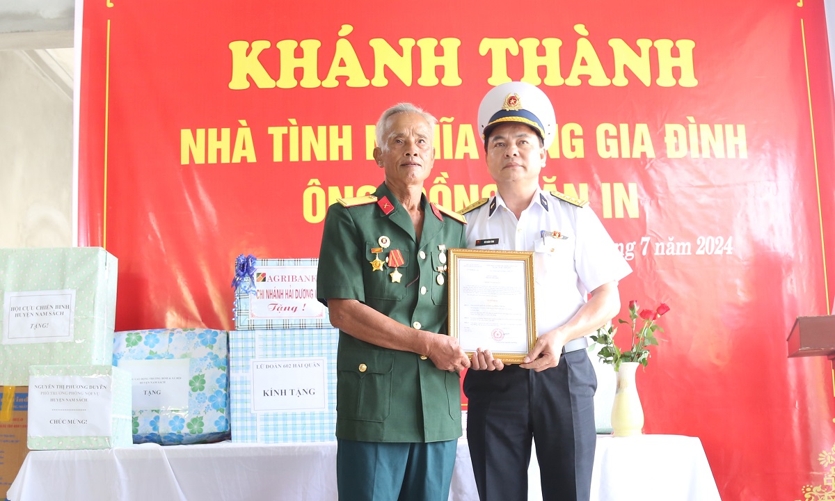 Sáng 25/7, tại Hải Dương, Lữ đoàn Thông tin 602, Bộ Tham mưu Hải quân phối hợp với cấp ủy, chính quyền xã Nam Chính, huyện Nam Sách, tỉnh Hải Dương tổ chức khánh thành và bàn giao nhà tình nghĩa tặng gia đình ông Đồng Văn In, sinh năm 1946 là bệnh binh 61%. Tham dự có Đại tá Vũ Xuân Tình, Phó Chủ nhiệm Chính trị Bộ Tham mưu; thủ trưởng Lữ đoàn 602 cùng lãnh đạo chính quyền địa phương.
