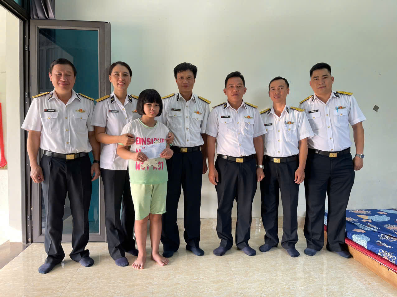 Thay mặt Đảng ủy, chỉ huy đơn vị, Thượng tá Phan Châu Tuấn đã ân cần hỏi thăm sức khỏe, tình hình học tập và cuộc sống của các cháu đồng thời động viên gia đình tiếp tục vượt qua khó khăn, vươn lên trong cuộc sống.
