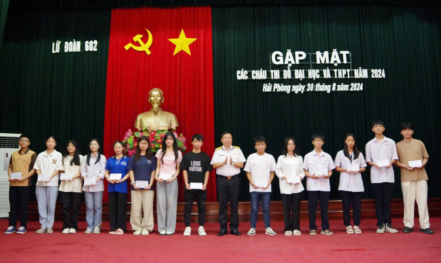 Tại Hải Phòng, Lữ đoàn Thông tin 602, Bộ Tham mưu Hải quân tổ vừa chức gặp mặt, tặng quà 37 cháu học sinh là con của cán bộ, nhân viên đơn vị thi đỗ đại học và trung học phổ thông năm 2024.