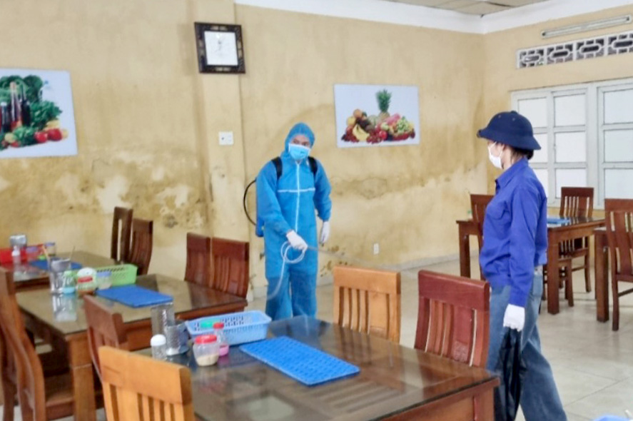 Phun thuốc phòng dịch bệnh sốt xuất huyết tại khu vực nhà ăn của Lữ đoàn