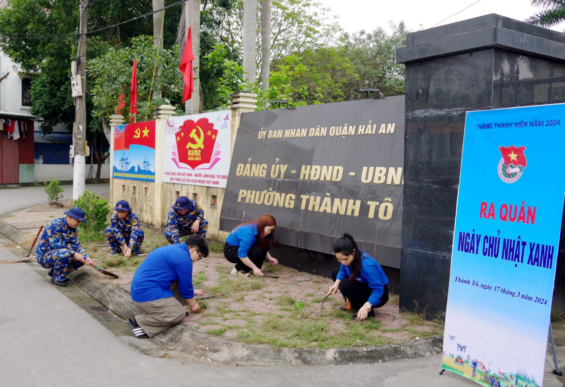Sáng 16/3, tại Hải Phòng, Đoàn cơ sở Lữ đoàn Thông tin 602, Bộ Tham mưu Hải quân phối hợp với các tổ chức quần chúng của đơn vị và Đoàn TNCS Hồ Chí Minh phường Thành Tô, quận Hải An, TP. Hải Phòng tổ chức phát động “Ngày thứ bảy tình nguyện, Ngày chủ nhật xanh vì môi trường sáng-xanh-sạch-đẹp”.