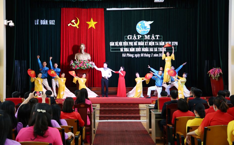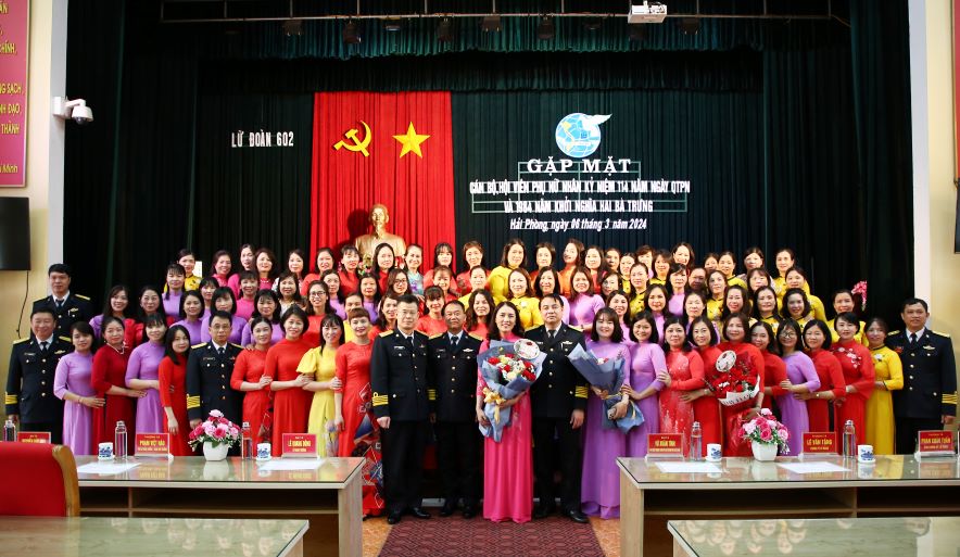 Chiều 6/3, tại Hải Phòng, Lữ đoàn Thông tin 602, Bộ Tham mưu Hải quân tổ chức gặp mặt cán bộ, hội viên phụ nữ nhân dịp kỷ niệm 114 năm ngày Quốc tế Phụ nữ (8/3/1910 - 8/3/2024), 1984 năm Khởi nghĩa Hai Bà Trưng. Dự buổi gặp mặt có: Đại tá Vũ Xuân Tình, Phó Chủ nhiệm Chính trị Bộ Tham mưu; Đại tá Lê Quang Đông, Lữ đoàn trưởng và Thượng tá Lê Văn Tặng, Chính ủy Lữ đoàn.