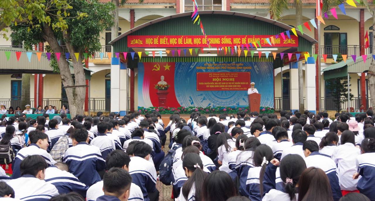 Ngày 25/3, tại huyện Ninh Giang, tỉnh Hải Dương, Lữ đoàn 602, Bộ Tham mưu Hải quân phối hợp với Ban Tuyên giáo Tỉnh ủy; Sở Giáo dục và Đào tạo tỉnh Hải Dương tổ chức thông tin về tình hình biển, đảo và tuyên truyền thu hút nguồn nhân lực xây dựng Quân chủng Hải quân trong tình hình mới cho gần 2.700 giáo viên, học sinh Trường THPT Ninh Giang và Trường THPT Ninh Giang II.