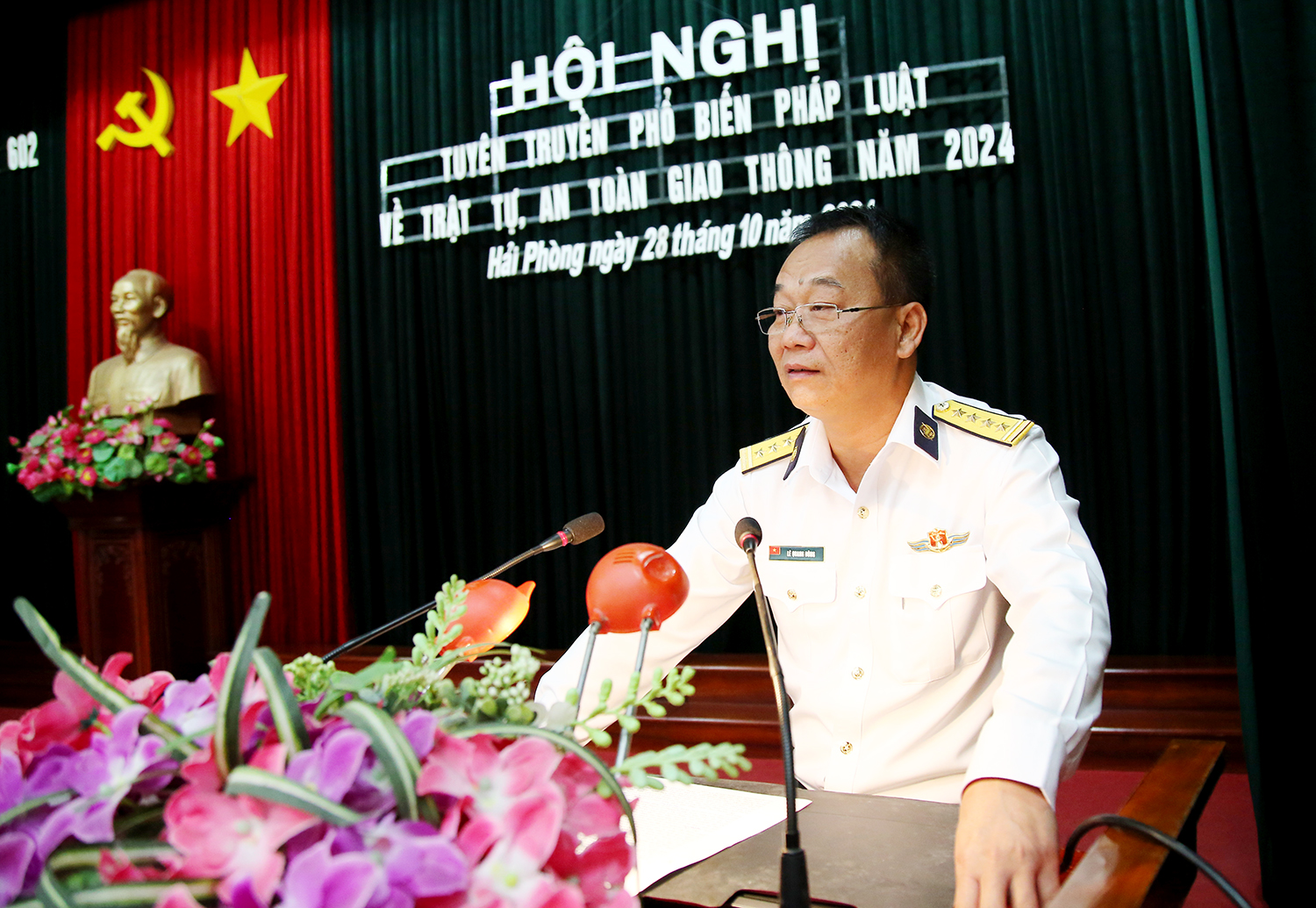Ngày 28/10, tại Hải Phòng, Lữ đoàn Thông tin 602, Bộ Tham mưu Hải quân phối hợp với Công an quận Hải An tổ chức Hội nghị tuyên truyền, phổ biến pháp luật về trật tự an toàn giao thông (ATGT) cho gần 400 cán bộ, chiến sĩ.