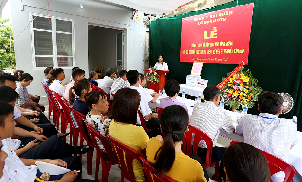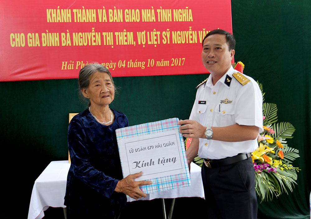 Sáng 4-10, Lữ đoàn 679, Vùng 1 Hải quân đã tổ chức bàn giao nhà tình nghĩa cho bà Nguyễn Thị Thêm ở khu Văn Tràng 2, thị trấn Trường Sơn, huyện An Lão, thành phố Hải Phòng.