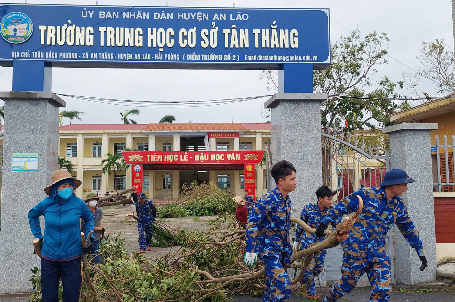 Mặc dù thiết tiết không thuận lợi nhưng cán bộ, chiến sĩ của Lữ đoàn đã không quản ngại khó khăn cùng các lực lượng và nhân dân các xã Tân Dân, An Thắng, An Tiến, Quốc Tuấn, Quang Trung và thị trấn Trường Sơn (huyện An Lão, TP. Hải Phòng) khẩn trương sửa chữa các ngôi nhà bị tốc mái; cắt tỉa, thu gom cây xanh bị đổ, gãy; tổng dọn rác, làm sạch môi trường; giải phóng giao thông; khơi thông đường thoát nước; di chuyển người và tài sản của nhân dân đến nơi an toàn…