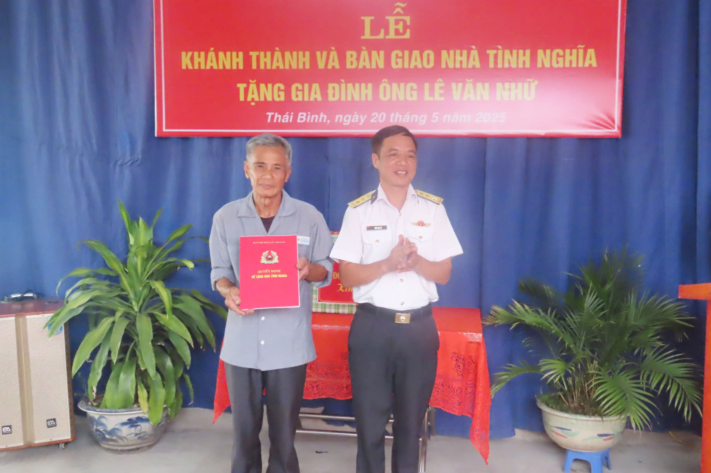 Ngày 20/5, Lữ đoàn 679, Vùng 1 Hải quân phối hợp với chính quyền xã Đông Hoàng, huyện Đông Hưng, tỉnh Thái Bình tổ chức khánh thành và bàn giao nhà tình nghĩa tặng gia đình ông Lê Văn Nhữ.