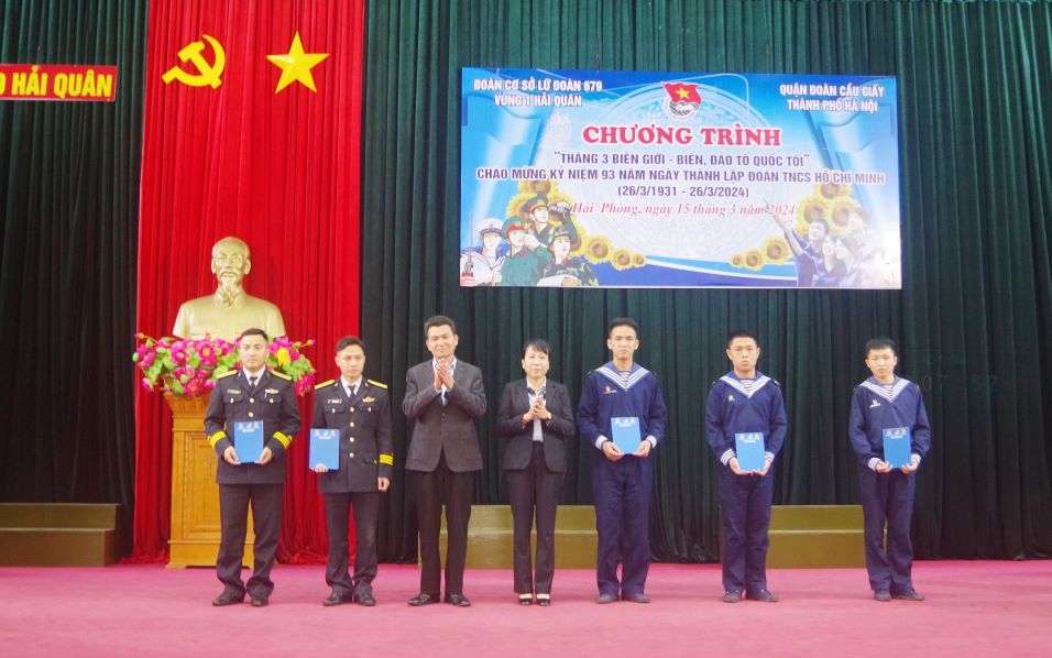 Sáng 15/3, Đoàn cơ sở Lữ đoàn 679, Vùng 1 Hải quân phối hợp với Quận đoàn Cầu Giấy (Hà Nội) tổ chức chương trình “Tháng 3 biên giới - biển, đảo Tổ quốc tôi”.