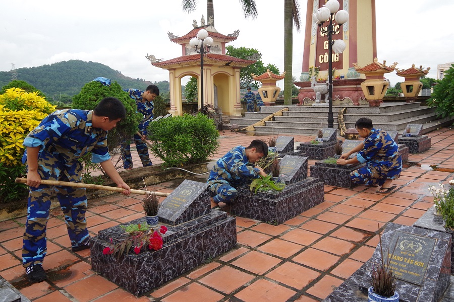 Cán bộ, chiến sĩ Lữ đoàn 679 tu sửa nghĩa trang xã Tân Dân