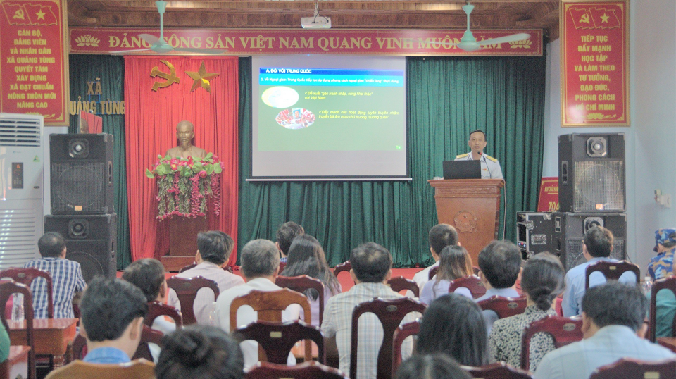 Ngày 26/5, tại huyện Quảng Trạch, tỉnh Quảng Bình, Lữ đoàn 679, Vùng 1 Hải quân phối hợp với chính quyền xã Quảng Tùng tổ chức thông tin về biển, đảo cho 120 cán bộ, đảng viên, cựu chiến binh của xã.