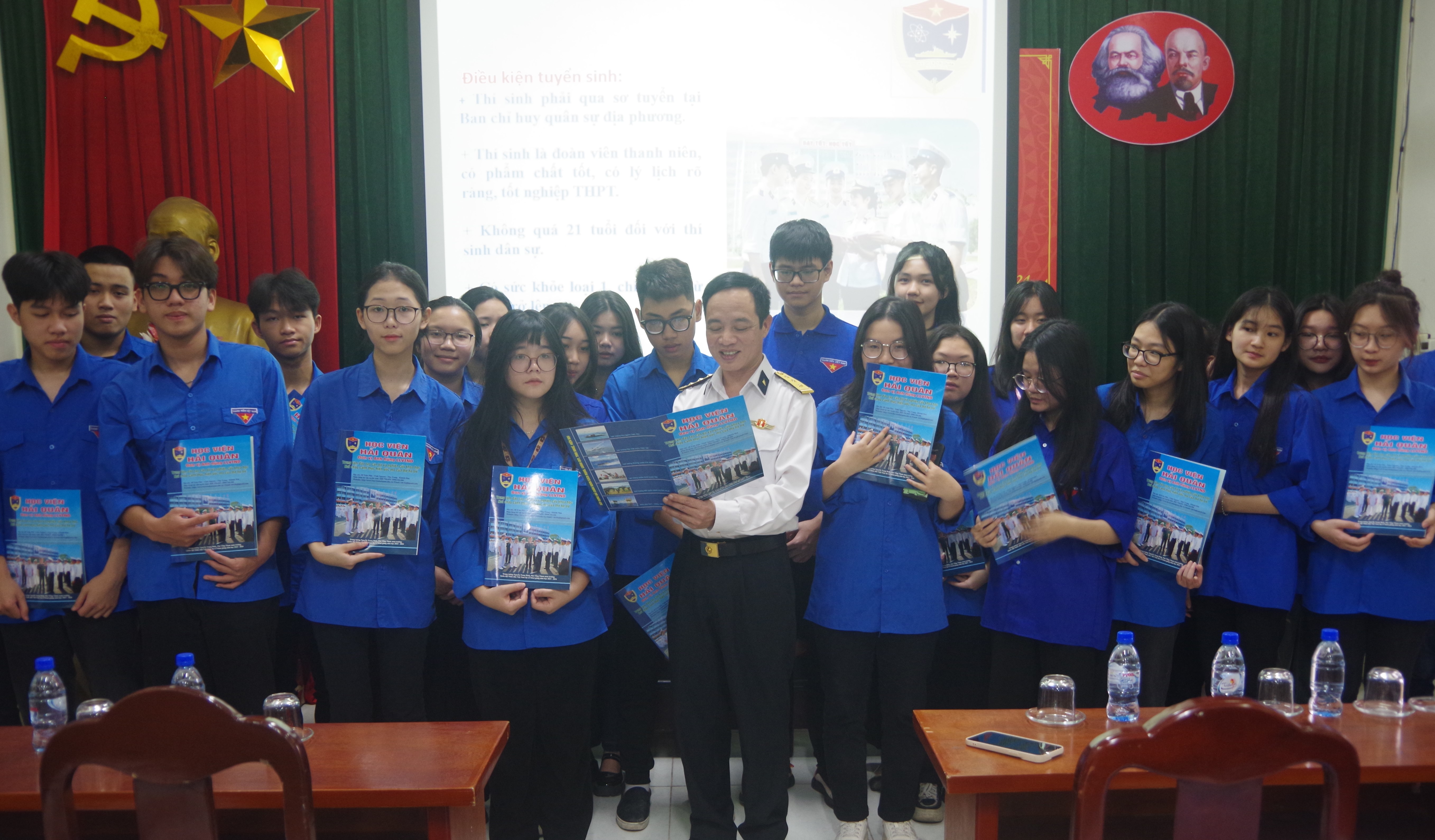 Đại diện Lữ đoàn cũng đã thông báo về quy chế tuyển sinh vào Học viện Hải quân năm 2024; các chế độ, chính sách đối với học viên và các lực lượng phục vụ trong Quân chủng Hải quân.