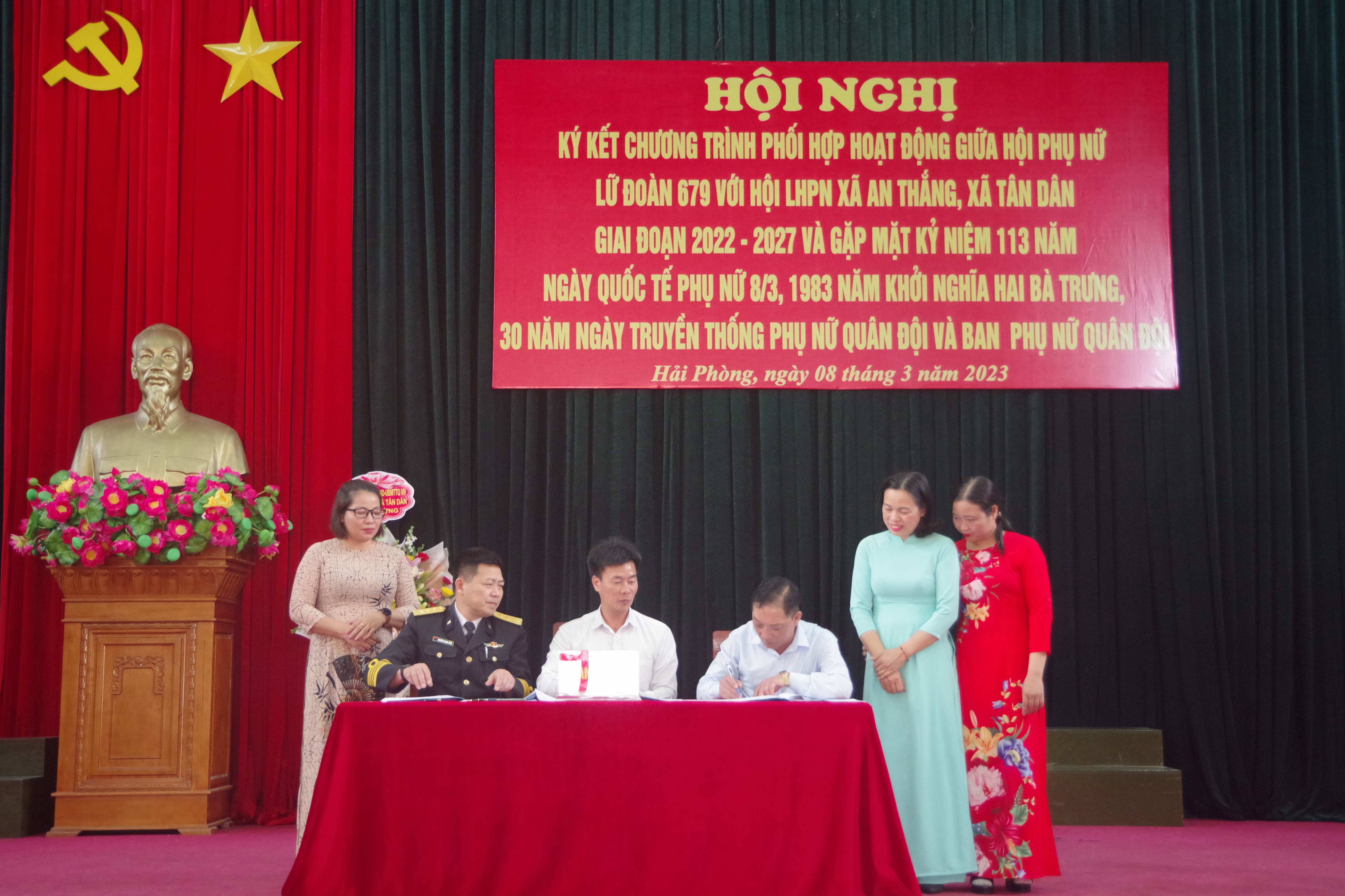 Dịp này, Hội Phụ nữ Lữ đoàn 679 và Hội Liên hiệp phụ nữ xã An Thắng, xã Tân Dân đã ký kết chương trình phối hợp hoạt động giai đoạn 2022-2027.