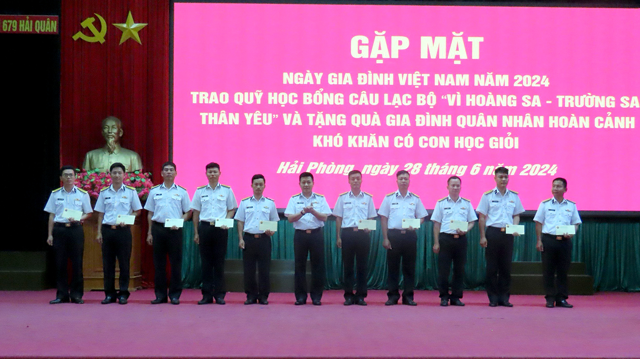 Tại buổi gặp mặt, thủ trưởng Lữ đoàn đã trao 12 suất quà của Quỹ học bổng “Vì Hoàng Sa - Trường Sa thân yêu”; 2 suất quà của Quỹ “Bảo trợ trẻ em Quân chủng”; 7 suất quà của Lữ đoàn tặng các gia đình quân nhân khó khăn có con học giỏi.