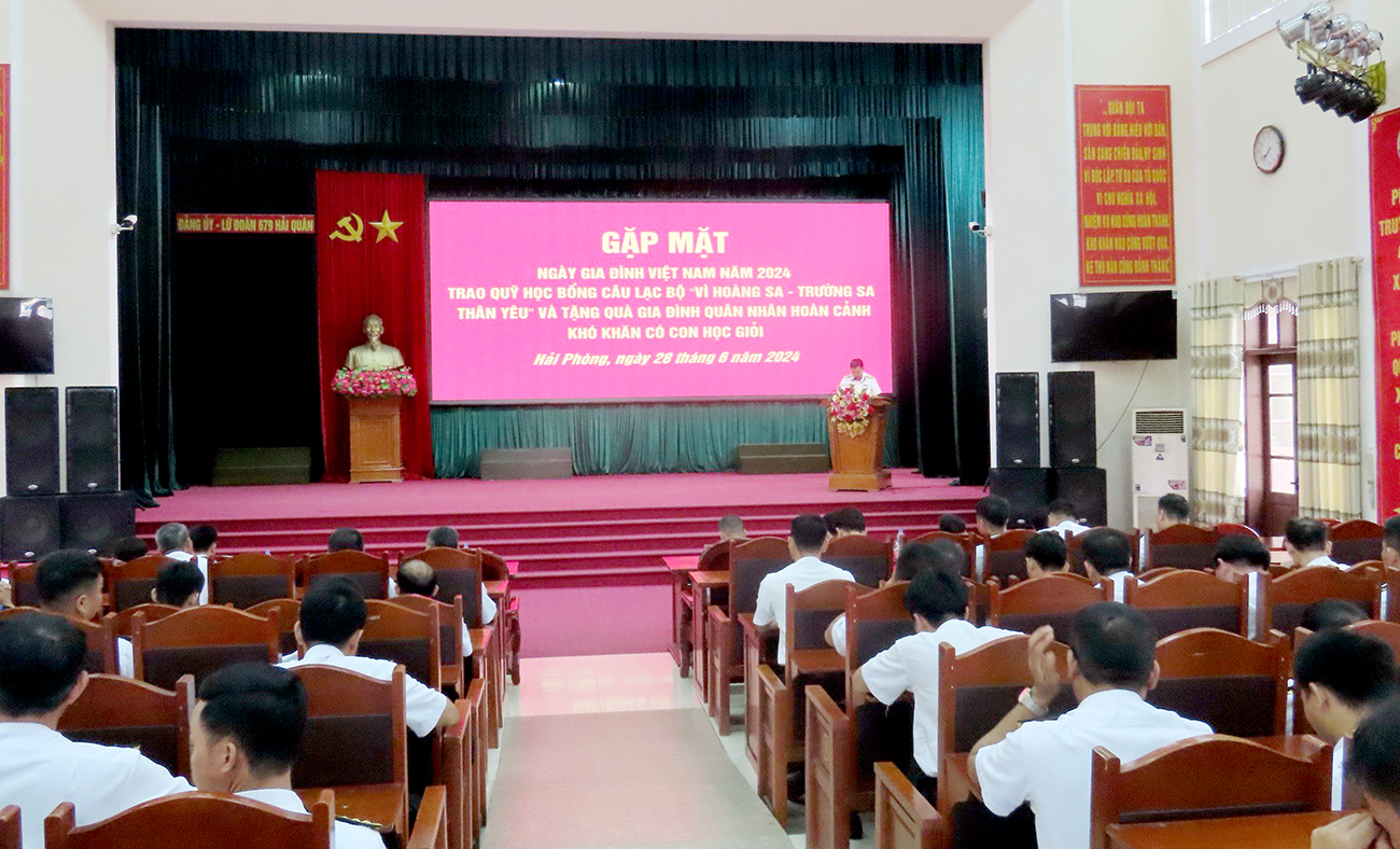 Sáng 28/6, tại TP. Hải Phòng, Lữ đoàn 679, Vùng 1 Hải quân tổ chức gặp mặt cán bộ, chiến sĩ nhân Ngày Gia đình Việt Nam. Đại tá Nguyễn Thanh Tùng, Bí thư Đảng ủy, Chính ủy Lữ đoàn dự.