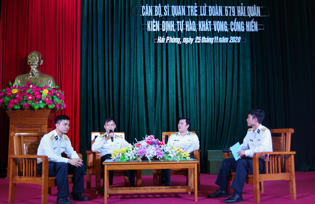 Tối 25-11, tại Hải Phòng, Lữ đoàn 679, Vùng 1 Hải quân tổ chức tọa đàm cán bộ, sĩ quan trẻ với chủ đề: “Cán bộ, sĩ quan trẻ Lữ đoàn 679 Hải quân kiên định, tự hào, khát vọng, cống hiến”. Thượng tá Trần Quốc Huy, Phó Chính uỷ Lữ đoàn tham dự.
